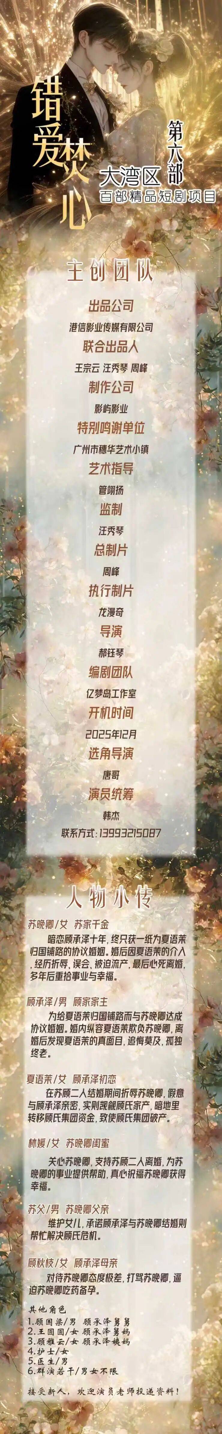 免责声明:戏客Seeker公众号(“本平台”)中全网组讯的信息、内容(“组讯信息”,包括但不限于影视项目名称、项目介绍信息、出品公司信息、导演信息、选角团队信息、拍摄相关信息、联系方式等)均来源于内容信息相关方提供或互联网公开信息。本平台不对组讯信息的真实性、准确性、完整性、及时性、关联性、适用性及安全性提供任何明示或默示的担保。请您谨慎参考或使用组讯信息,并确保您的人身、财产安全,本平台不对您使用或参考组讯信息而造成的后果承担任何责任。