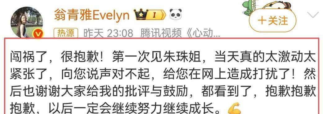 被全网群嘲一天后,翁清雅终于发文道歉,自称是见到偶像太紧张才“闯了祸”。但吃瓜群众发现,这场道歉大戏里最精彩的还要数朱珠的回应——短短八个字“没事儿,早就翻儿啦”配上两个表情包,被网友解读出三层意思:表面大气,实则暗示“你翻车我早知道”,还暗戳戳划清界限。
