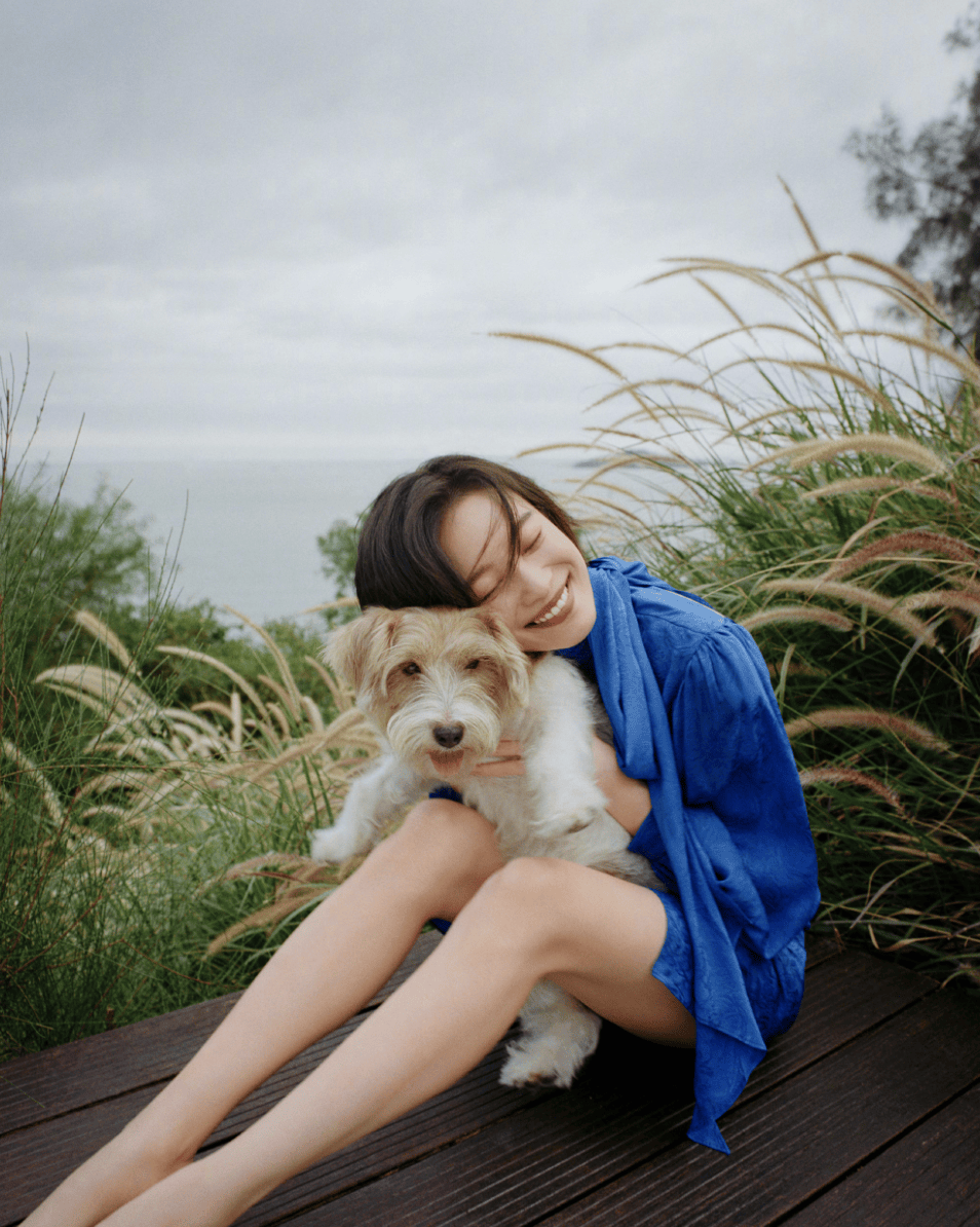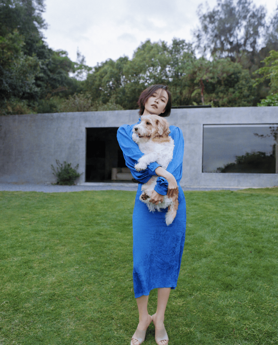 倪妮抱着小狗俯视镜头,优雅治愈。