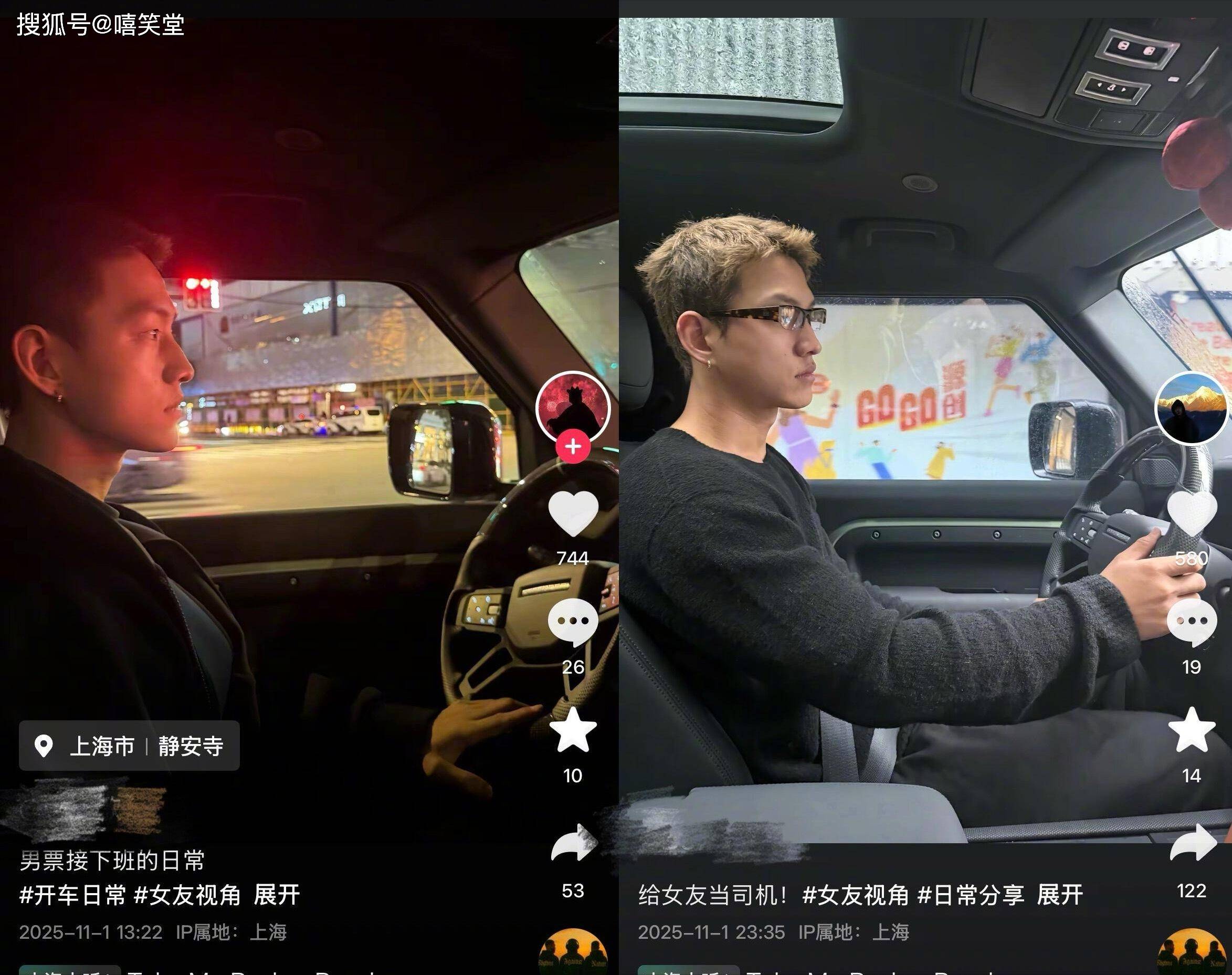 而他的照片为女友视角,很可能是李嘉格拍摄。