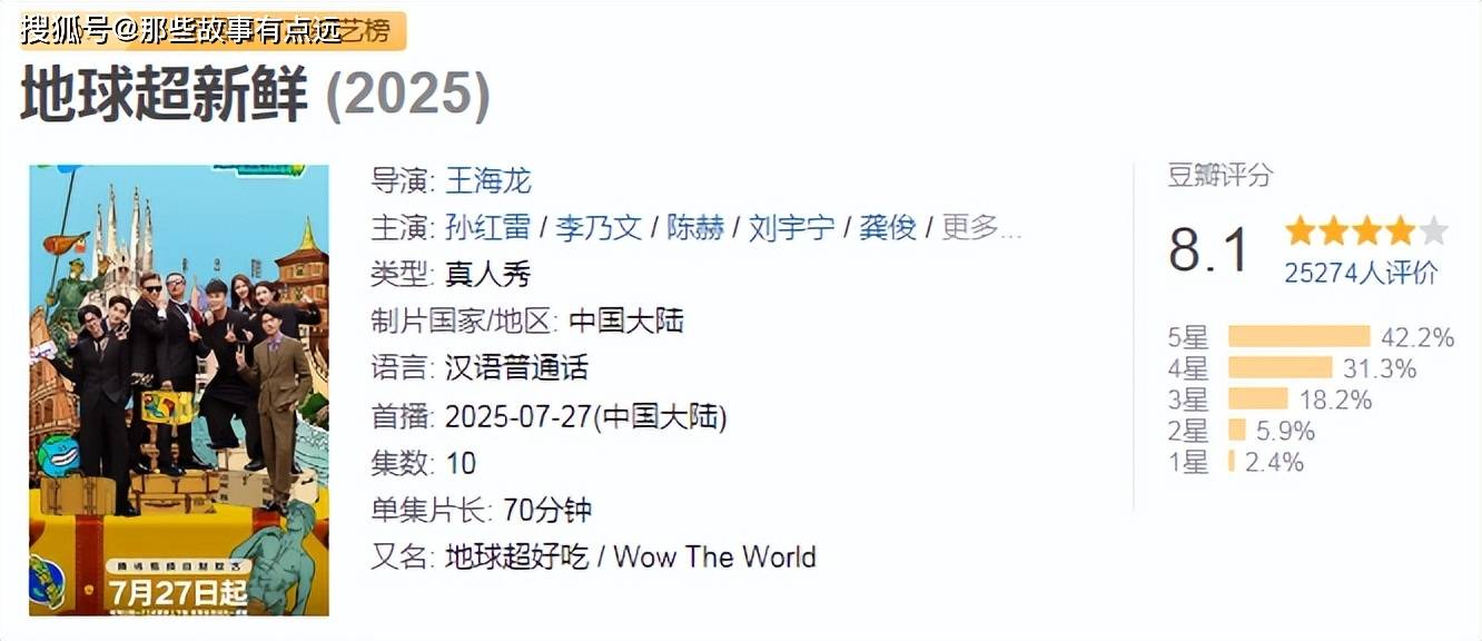 2025年网络得分排名前十的综艺节目里面,只有《地球超新鲜》是一档新综艺。