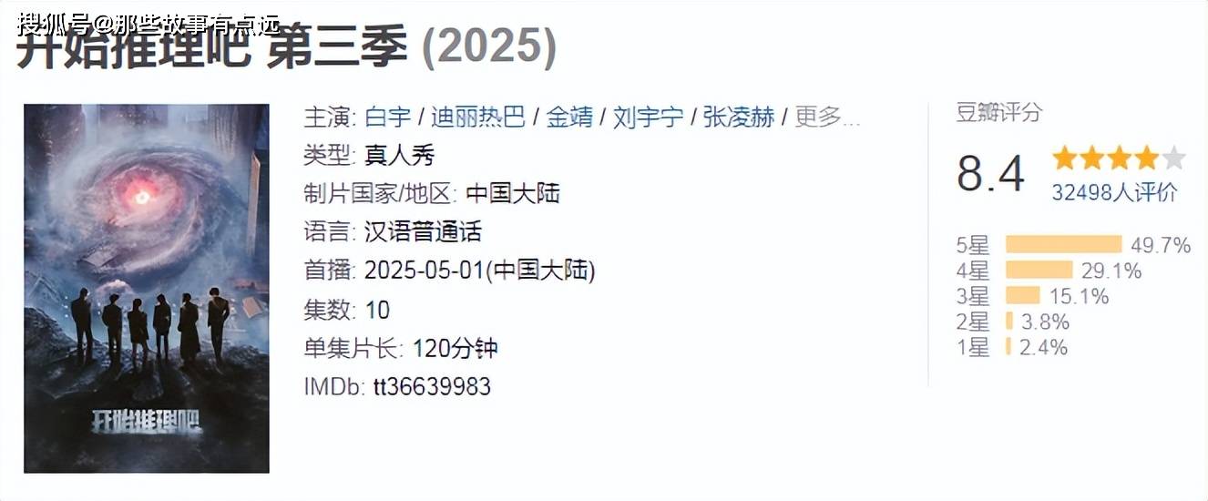 《开始推理吧》前两季评分都不太高,都是只有6.8分。这一季口碑提升不少,达到了8.4分。