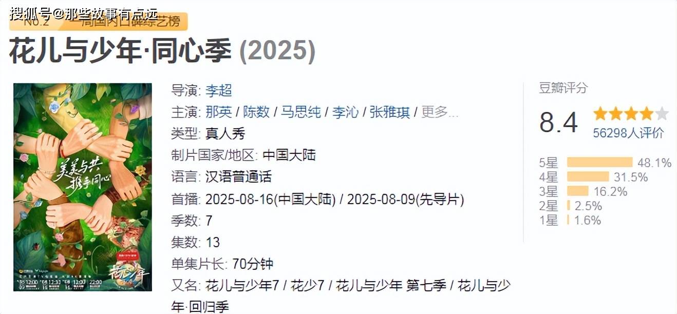 这一季的《花儿与少年》如果与之前的“北斗七行”相比,似乎还差了一些意思。但如果与上一季相比,观感还是要好上很多,上一季的网络评分只有3.9分,而这一季目前已经达到8.4分。