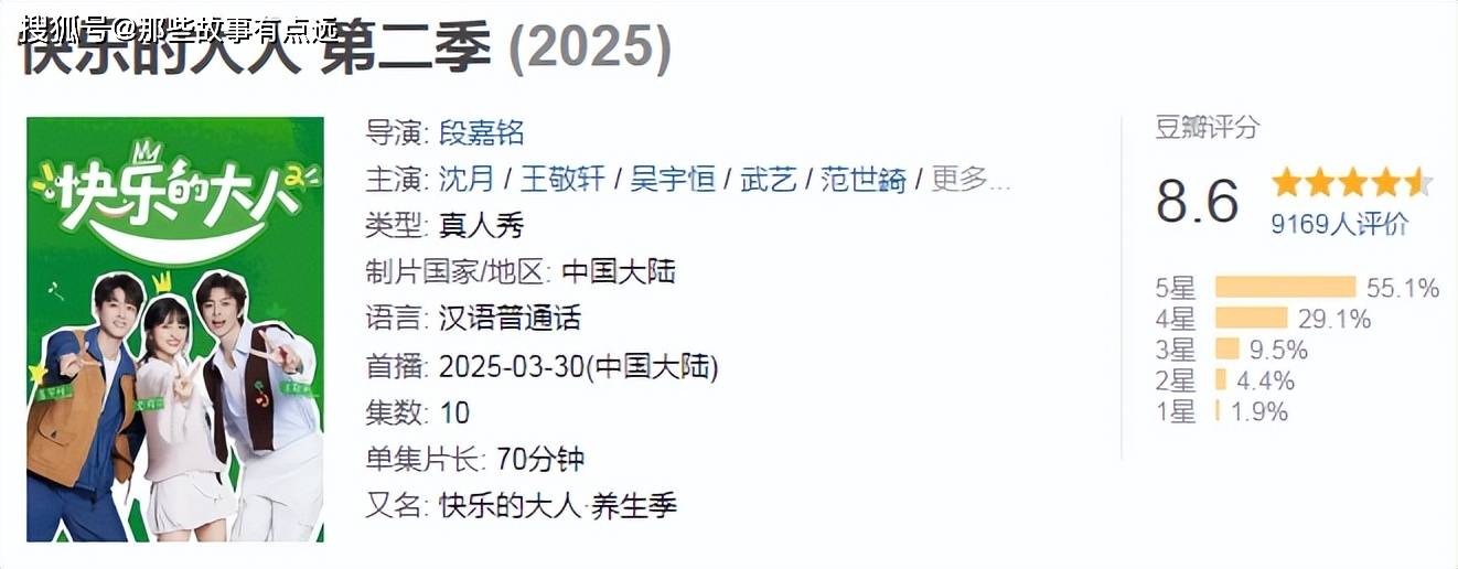 可能很多人都没有想到第一名会是《快乐的大人》,与前面几档综艺相比,这应该算是一档有些冷门的综艺,毕竟参与评分的只有三千多人,但不管怎么说,起码在这些人心中,《快乐的大人》就是一档优秀的综艺。