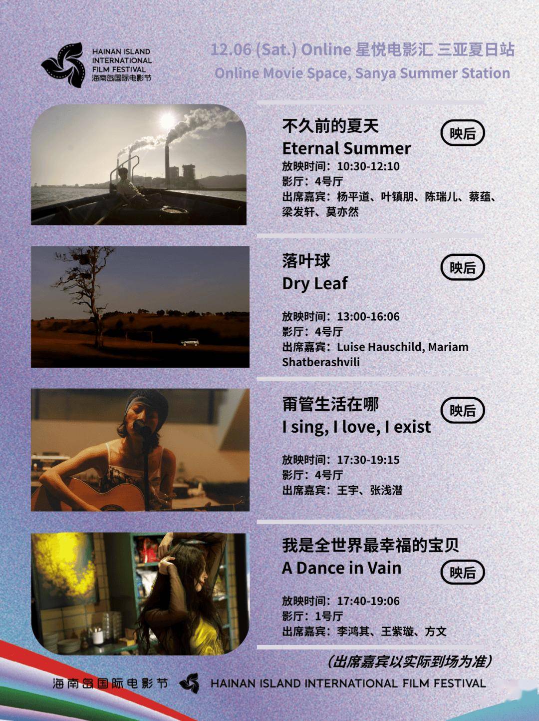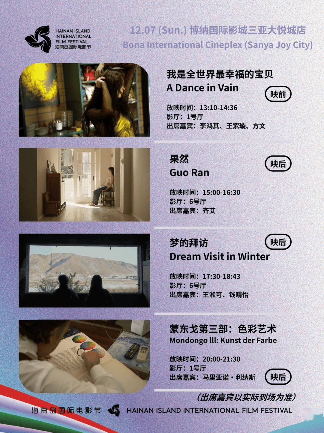 电影节最为核心的魅力之一,在于电影和影人的同时汇聚,彼此回响。在第七届海南岛国际电影节即将亮相的展映影片中,有许多不仅将在大银幕上与观众见面,更将在映后交流环节中迎来它真正的“第二次放映”。电影节始终相信,电影的生命力并不止于银幕之上,而是在灯光亮起之后,在创作者与观众的凝视、追问、争辩与共鸣之间,被重新点燃。