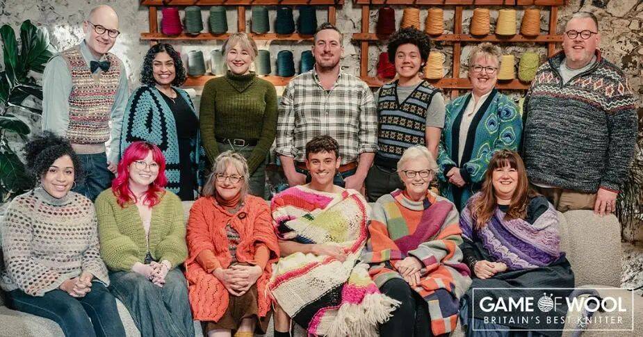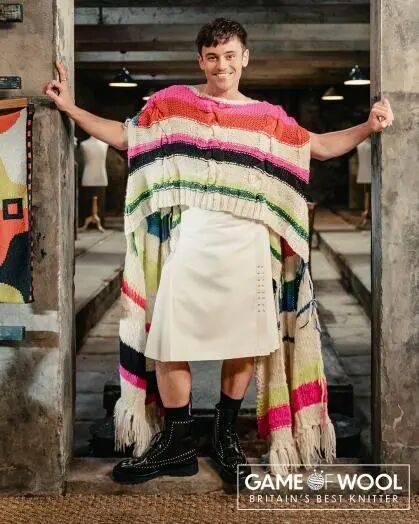 尽管挑战的设置紧张而高压,《毛衣争霸战》依然延续了英国技能竞赛节目特有的治愈感。选手们的背景五花八门,从皇家海军陆战队员到邮轮歌手,从八个孩子的祖母到18岁的时尚专业学生,不同年龄、性别和职业构成的群体共同证明了编织早已不再是特定人群的专属爱好,而是一种跨族群的创造性语言。对手工艺的共同热爱让整座“编织仓”(Yarn Barn)里充满了友爱、互助与一种温馨的社区感。主持人汤姆・戴利作为奥运跳水冠军,更是节目独特情绪气质的核心。他是资深编织爱好者,从奥运会观众席上无时不刻地织毛衣到节目里他亲手织的羊毛斗篷,都能看出他对针织的真挚热爱。他的主持风格被评价为“闪闪发光、充满活力的欢乐漩涡”,在选手焦虑、创作卡壳时,他的一个拥抱或一句轻松的玩笑,比技术指导更能抚慰情绪,也冲淡了竞技节目的紧张气场。选手之间同样没有刻意制造的勾心斗角,反而是难得的温情时刻不断出现:第二期里,一支队伍赶不上最终缝合进度,另一队在完成自己的作品后毫不犹豫地上前帮忙,这不是综艺效果,而是手工爱好者对作品完整性最朴素的尊重。有人因时间紧迫而沮丧时,总会有人递上一个拥抱、一句幽默的鼓励。苏格兰高地如画的风景,加上五彩斑斓、松软温暖的毛线构成的空间,共同营造出轻松的观看体验,使这档竞赛类节目在紧张之外,也传递出一种让人能够平静下来的松弛感。