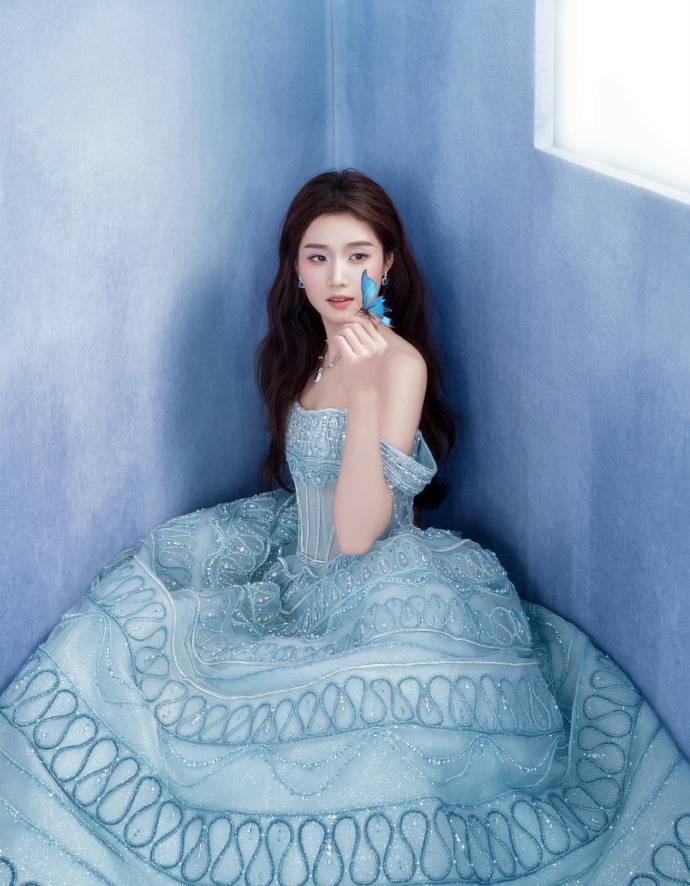 工作室发布的精修图中,卢昱晓身着浅蓝抹胸纱裙,披肩长发搭配宝蓝色珠宝,被赞"冰雪公主"。但红毯现场改为卢昱晓贴头皮盘发,未佩戴项链且耳饰突兀,视觉重心失衡暴露脸型缺陷,被批"浪费艺人肩颈优势"。