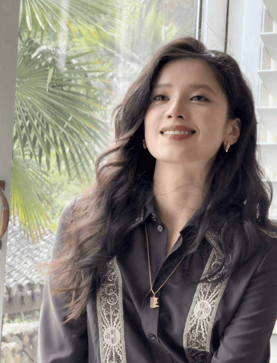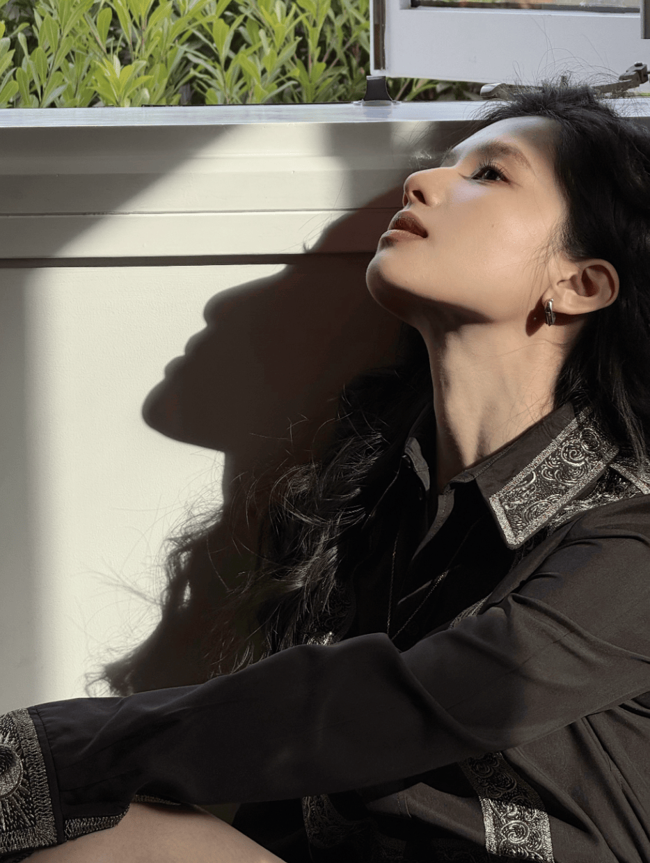 张婧仪侧脸特写,长发微卷衬出柔缓气质。