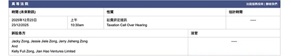 宗馥莉方认为,原告未能清晰证明其在该笔巨资中享有何种确定权益。同时,她坚称不存在资产被耗散或转移的紧急风险,因此高等法院批准保全令与披露令的基础并不牢固。此次向上一级法院申请许可,是继9月上诉被高等法院驳回后的再度闯关,显示出宗馥莉对此案毫无退让之意,决心将法律程序推进到底。案件另一关键日程——诉讼费评定聆讯已定于12月23日举行,意味着无论上诉结果如何,这场“金钱战争”的代价正在快速累计。