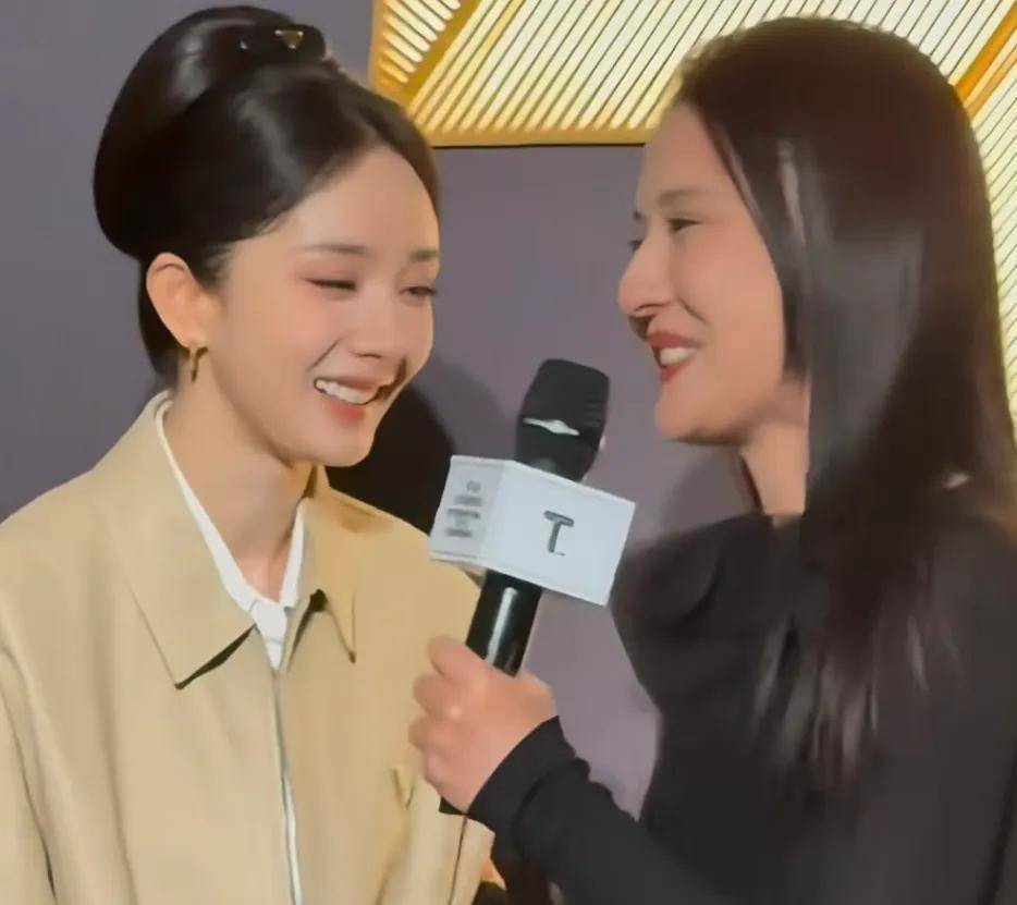围观杨幂和热依扎同框互动全程,会发现其实是杨幂先主动,热依扎正在接受采访,杨幂上前拥抱了热依扎一下,还来了一句:“华华说得太好了,给华华鼓掌!”
