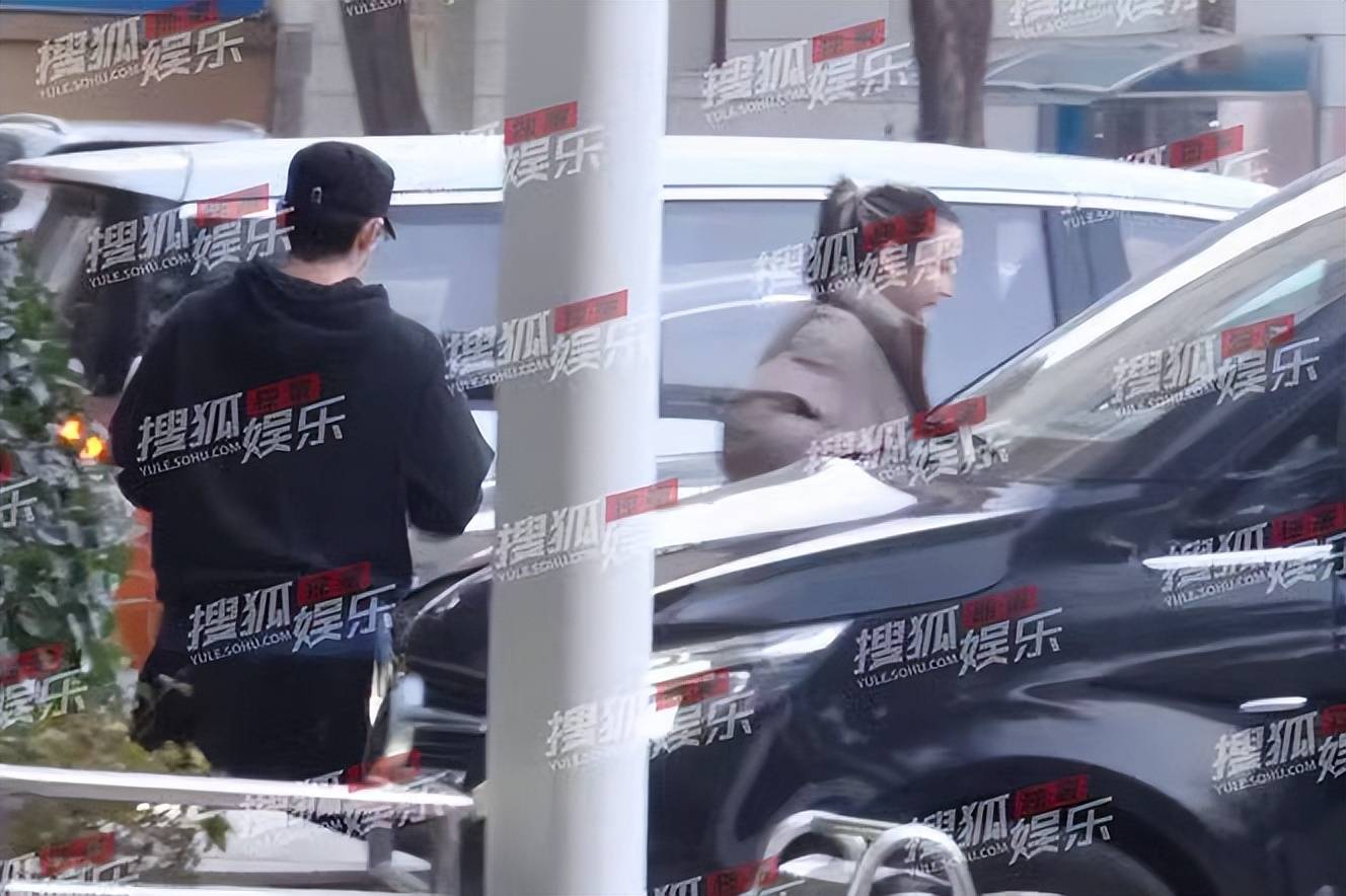 李治廷护送老婆上车,李治廷戴着口罩和帽子,很难辨认出来。