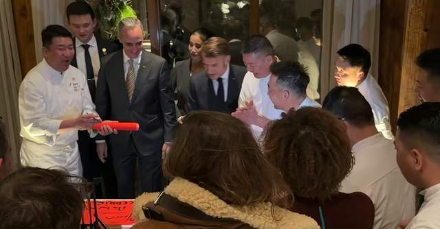 曝光的画面中,虽然没有巩俐与马克龙的合照,但掌刀的大师傅却分别于他们每个人合照,这就说明两人同时在场。