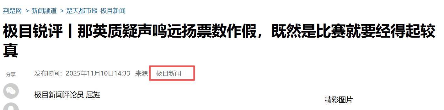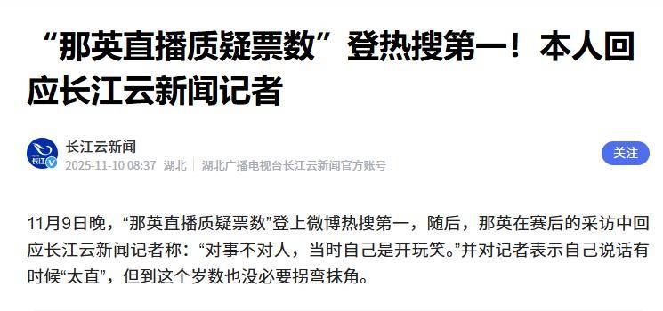 最近,她因为在一档节目里公开对比赛结果提出疑问,被官方媒体点名评论了。
