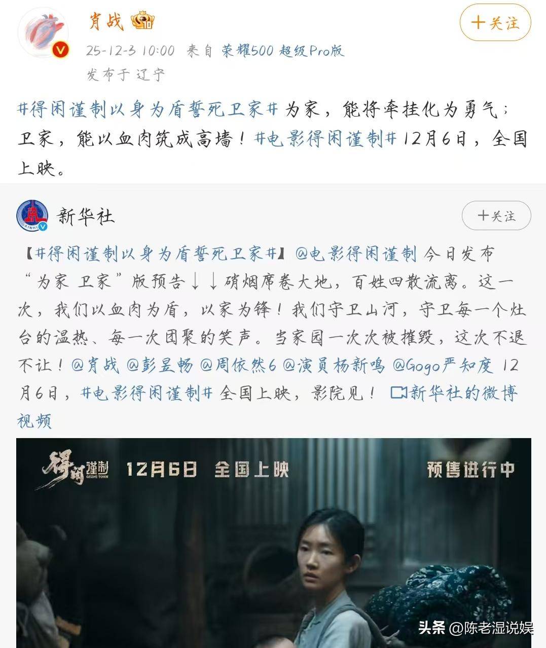 12月3日,肖战在自己的社交平台上发布了电影《得闲谨制》的预告片。