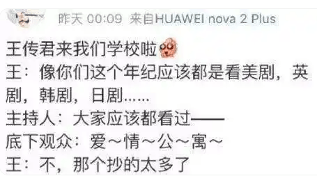再后来王传君被问到《爱情公寓》的时候,说剧抄袭,说它像广告片。