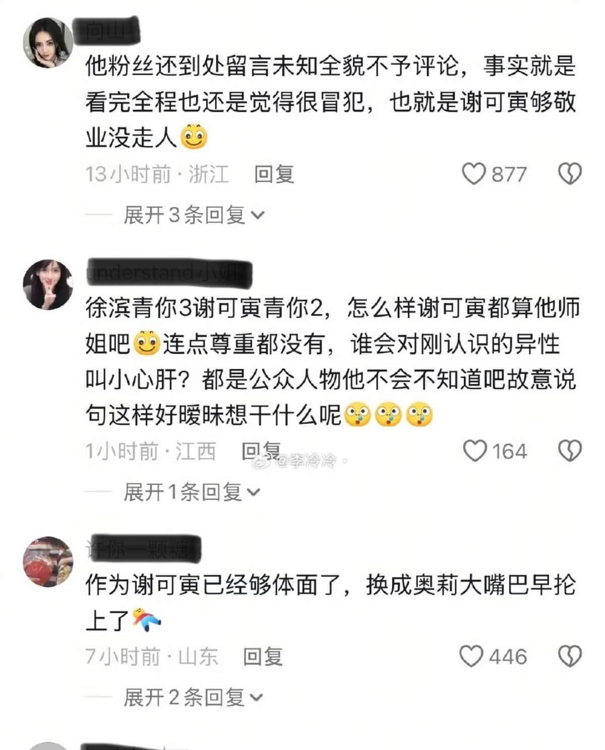 节目播出后,舆论迅速炸锅。大量网友认为,徐滨的行为早已超越玩笑范畴,是不尊重同事的职场越界;而他的粉丝则奋力辩护,称这只是为了节目效果的谐音梗。随着争议愈演愈烈,徐滨终于在社交平台发文道歉,承认玩笑开得“不太合适”,但全文未明确向谢可寅本人致歉。