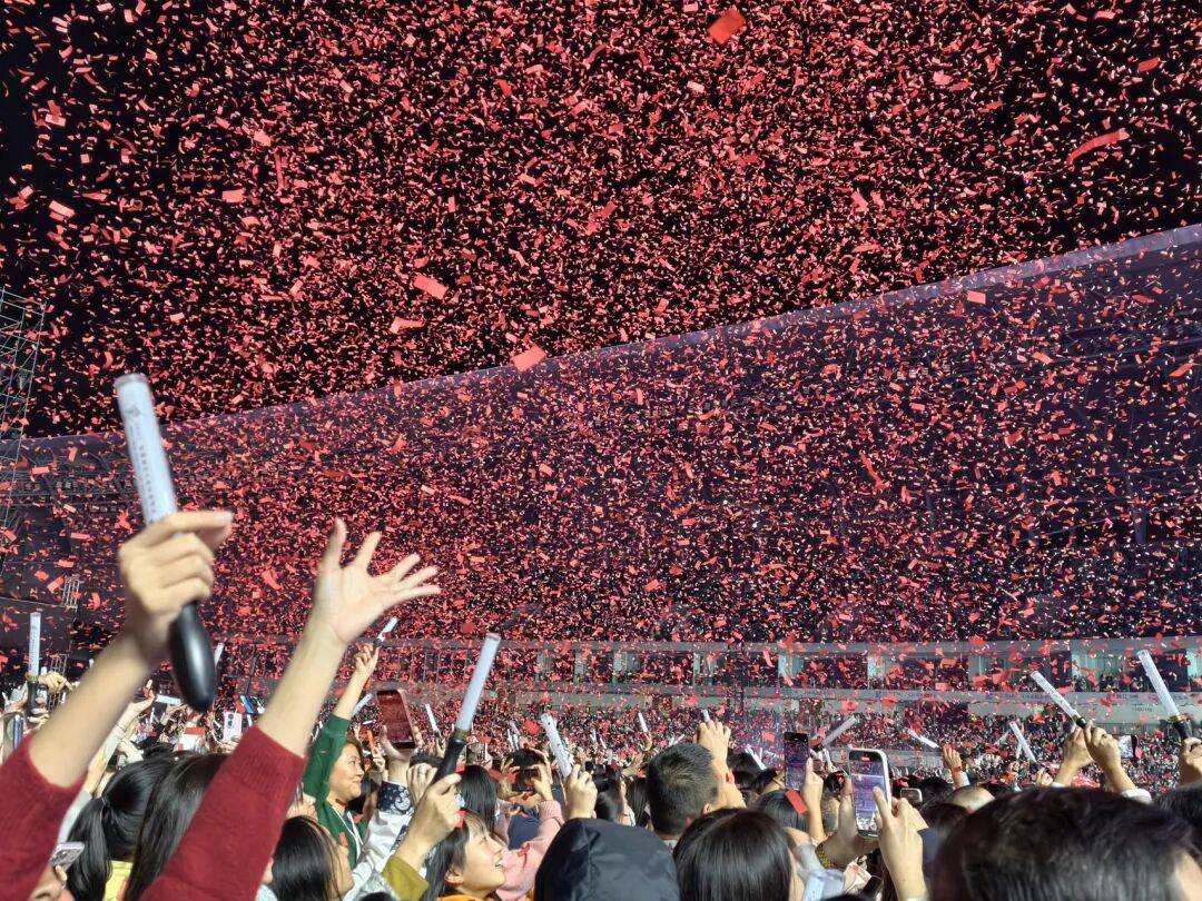 当张韶涵唱起《潘多拉》《淋雨一直走》《手心的太阳》《无名的人》等多首经典作品,清亮嗓音一开口,便像一把钥匙,打开了全场人的青春记忆匣子 —— 有人想起学生时代耳机里循环的旋律,有人念起第一次跟着歌词哼唱的午后,那些藏在时光里的故事,都随歌声慢慢浮现。《遗失的美好》温柔前奏响起时,观众手中的荧光棒随之整齐摆动,点点微光漫过场馆,不少人大声合唱,眼神里满是对青春岁月的怀念,现场晕染成一片载满回忆的星光海洋;而当《隐形的翅膀》熟悉旋律刚一浮现,自发形成的万人合唱声浪便席卷全场,歌声里藏着校服时代的勇气、初入社会的坚持,清亮又充满力量的合唱将氛围推向顶点,每一个音符都成了联结青春与当下的纽带,让全场人在回忆里完成了一场跨越时光的共鸣。
