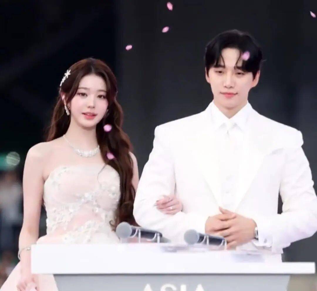 当时,所有艺人被要求集合拍摄大合照。由于前排位置有限,工作人员引导张元英站到李俊昊身旁。但李俊昊立即注意到张元英因穿着紧身短裙,在拥挤的前排蹲坐会极为不便且可能尴尬。他随即礼貌地请张元英回到IVE队友的队伍中,并示意摄影师可以直接开始拍摄。不仅如此,他还主动招呼其他男偶像上前,巧妙地为穿着类似服装不便蹲坐的女艺人们腾出了更舒适、得体的后方空间。