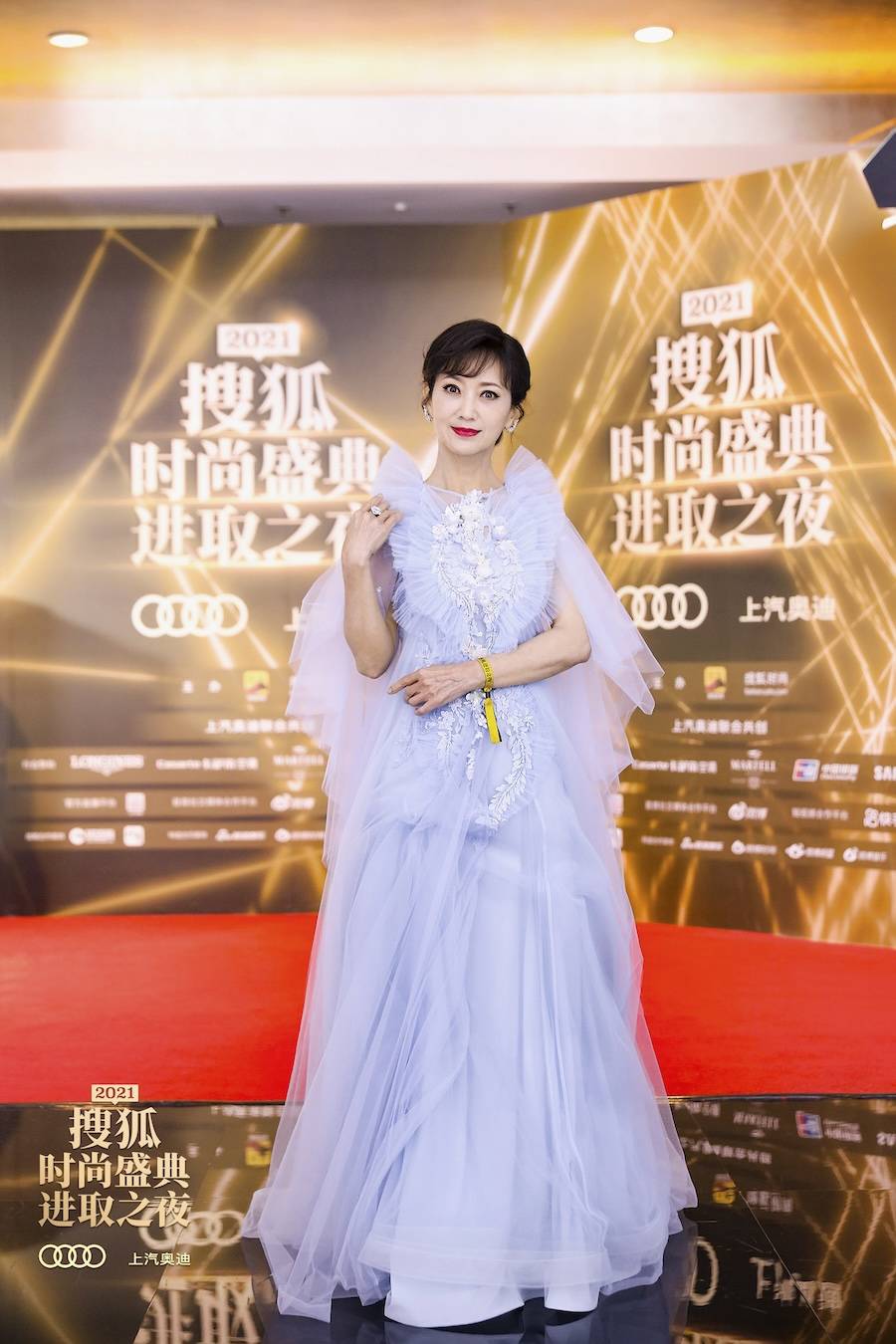 2021年适逢搜狐时尚盛典十周年,活动以“进取之夜”为主题,演员赵雅芝一身淡紫色礼裙亮相,散发着时光沉淀下的优雅与端庄。