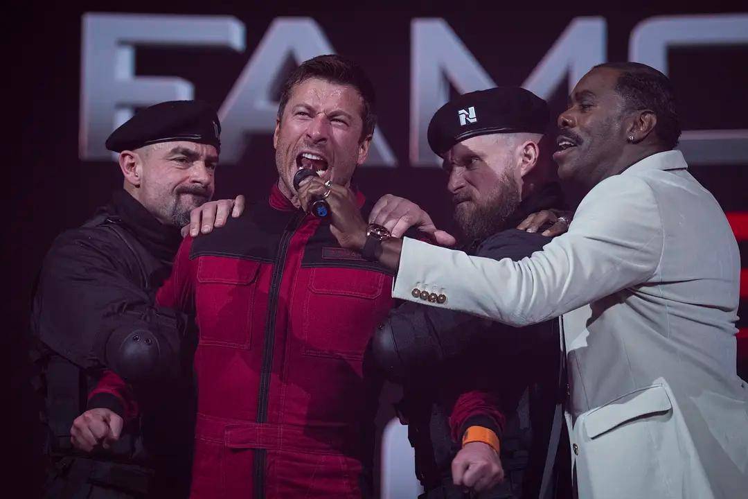 △ 《猎杀游戏》首映,(从左至右)主演格伦·鲍威尔、导演埃德加·赖特和来捧场的阿汤哥