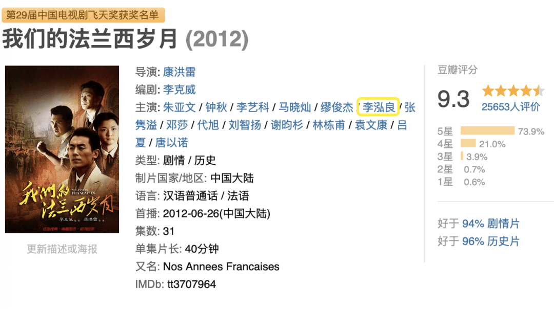 而他的代表作莫过于拿下9.3分的《我们的法兰西岁月》。