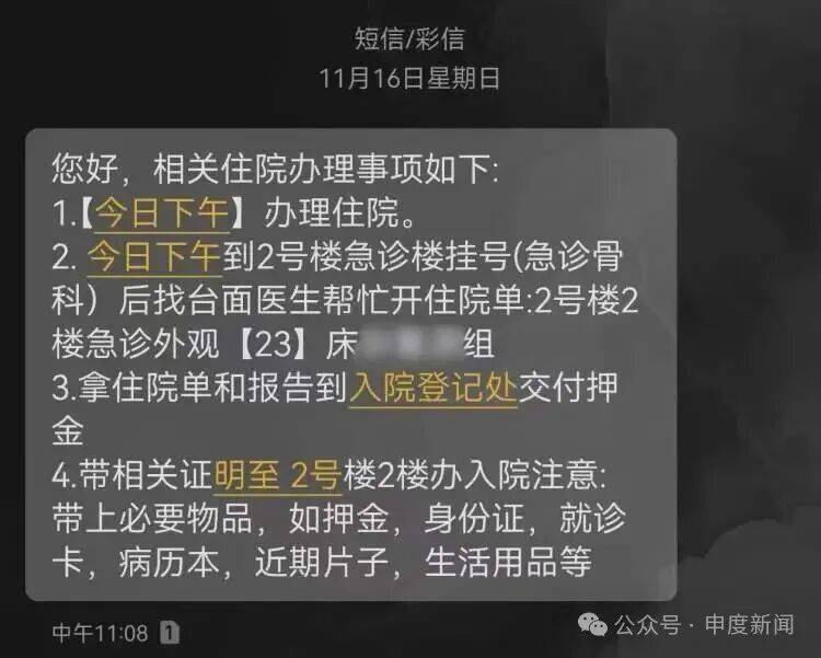 ▲叶女士老公办理住院的短信