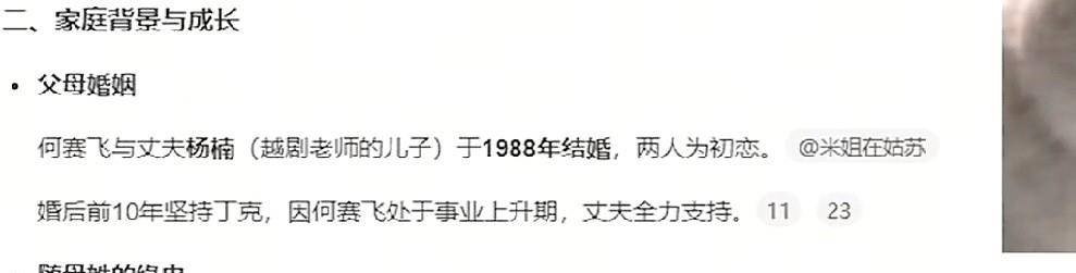 正当网友想批评她思想传统,一查却发现:何赛飞的儿子竟随母姓。这下,大家对她那套婚育观也无从反驳了。