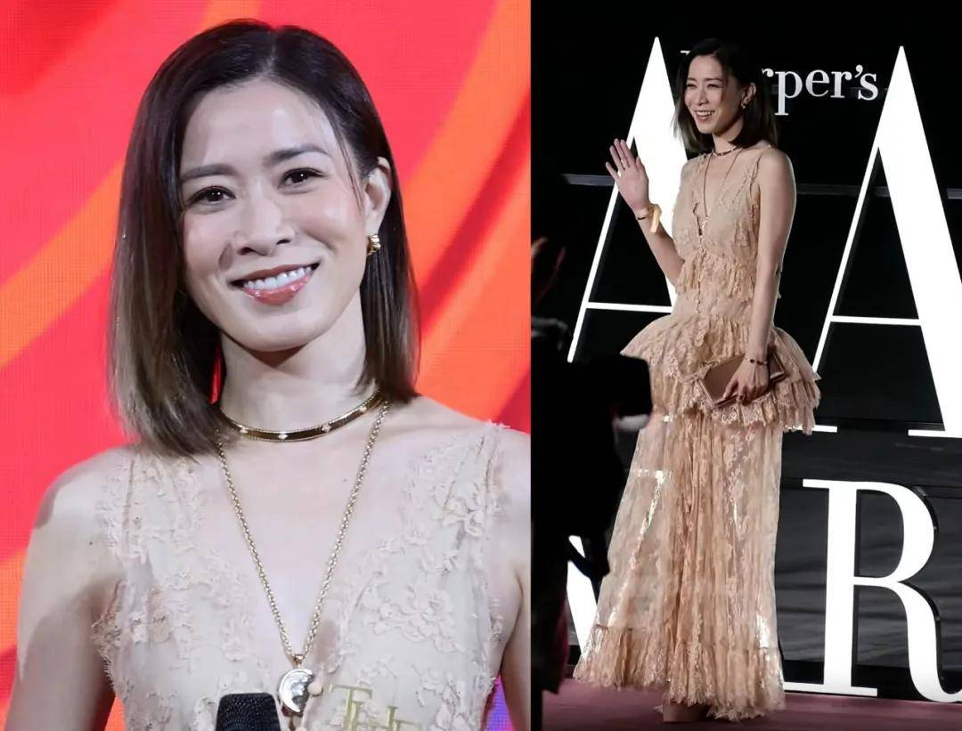 佘诗曼穿了一条卡其色纱裙,红毯生图完全看不出她已经是50岁的人。对于大部分港星来说,感觉他们除了自律之外,在保养的审美上也很牛,不会盲目追求全脸嘭弹无皱纹的状态,所以大部分都能做到自然、显年轻。