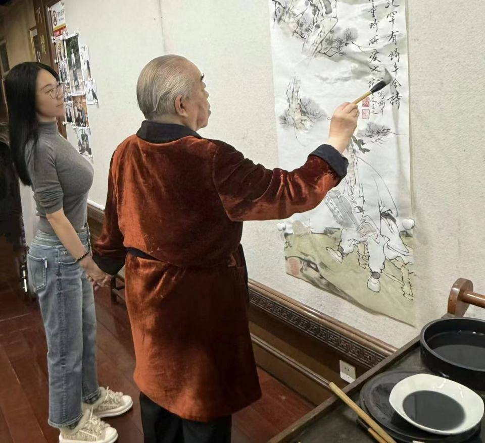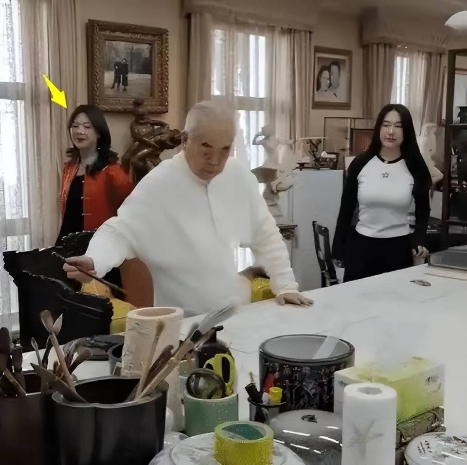 从范曾背影来看,状态并不年轻,已经很老了,但他还坚持作画。
