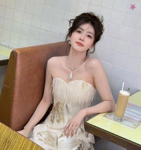 白鹿的皮肤天生就比较白净,因此当她穿上这件白色礼服时,会给人一种一尘不染的清新感觉。