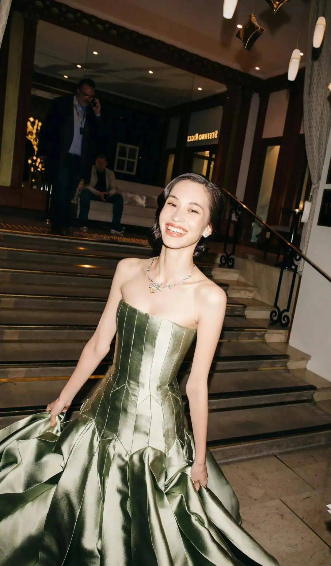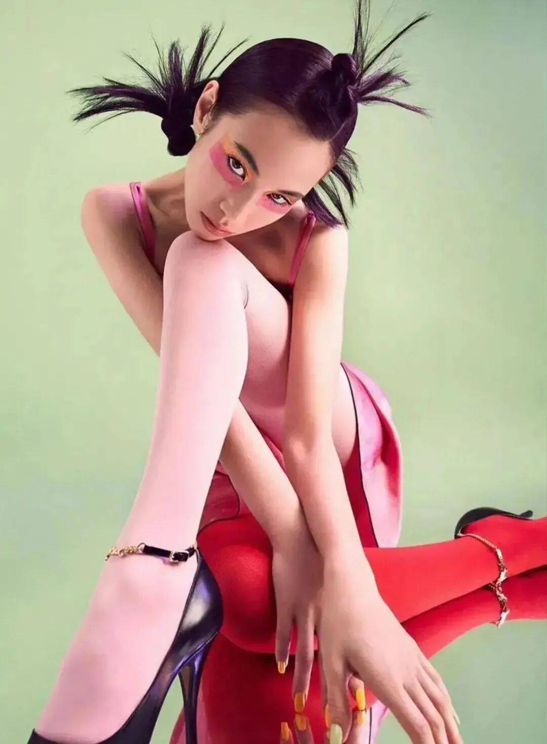 水原希子穿着粉色连衣裙,搭配红色长筒袜,特意露出自己左边的大美腿,绝对性感妖艳!