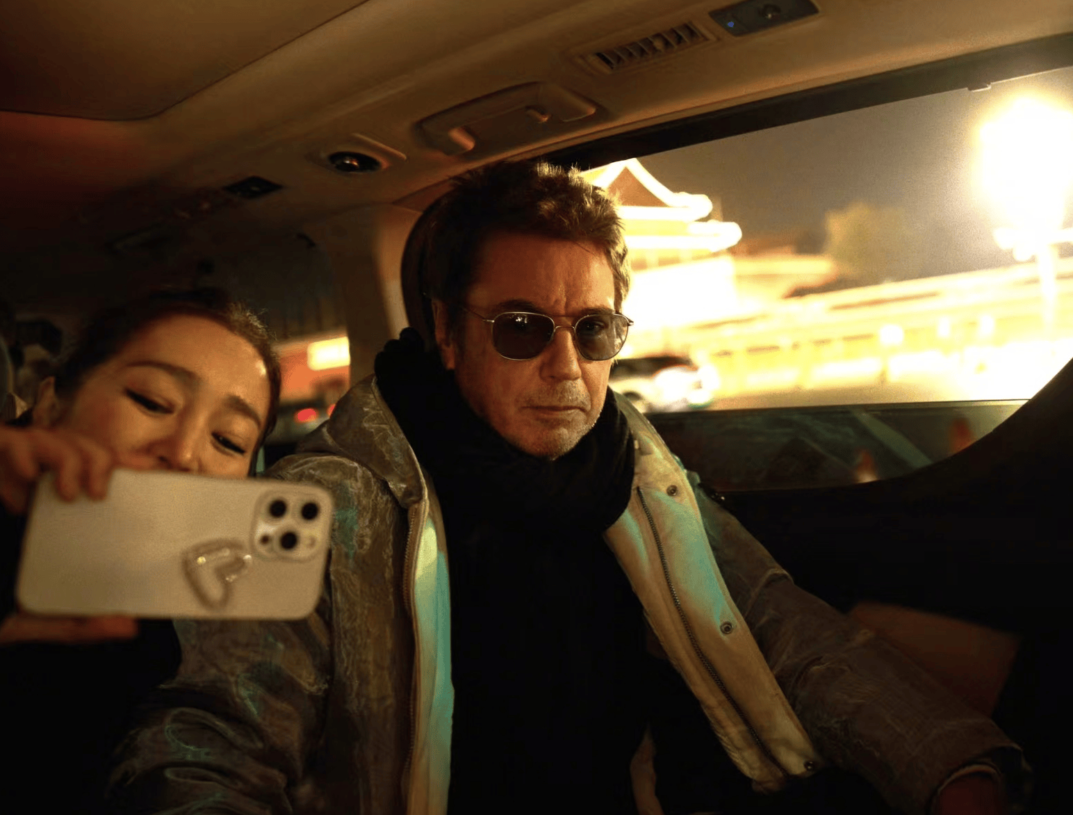 巩俐和老公在车上自拍。