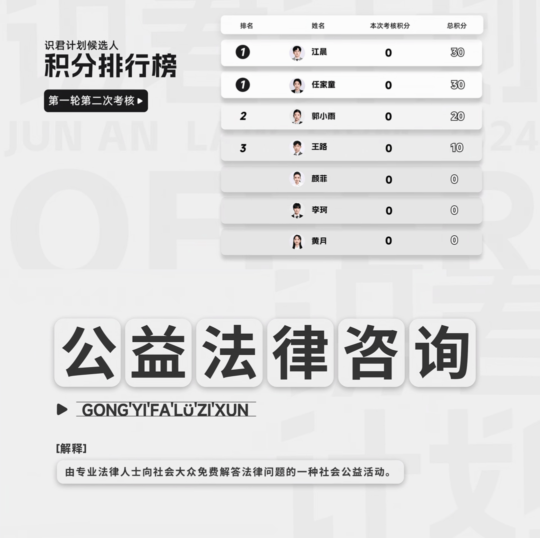 这是一部乍看上去充盈着“经济上行期的美”的律政职场青春剧。它围绕君安律所招募精英实习生的“识君计划”展开,讲述了七名法律系在校生,如何在一个个案件任务中展开竞合,并最终完成从学生蜕变为职场人的故事。