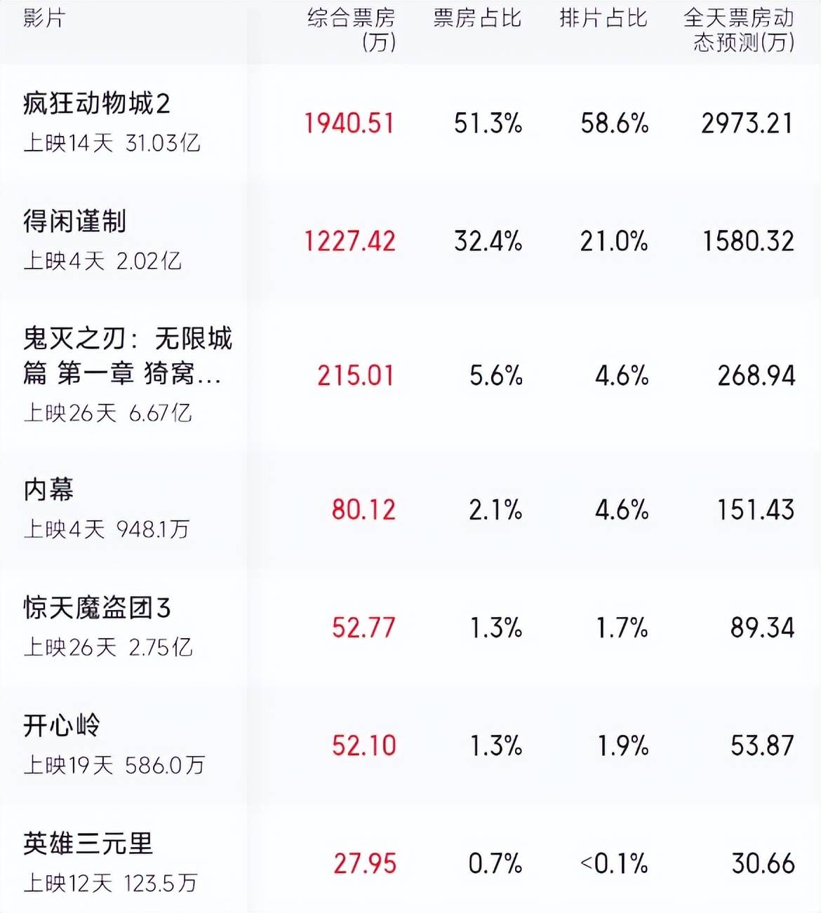 《疯狂动物城2》不愧是全球有名的IP,累计票房已经突破31亿,预测票房能达到38亿,在内地市场反响大好,看来迪士尼的含金量还在持续上升。