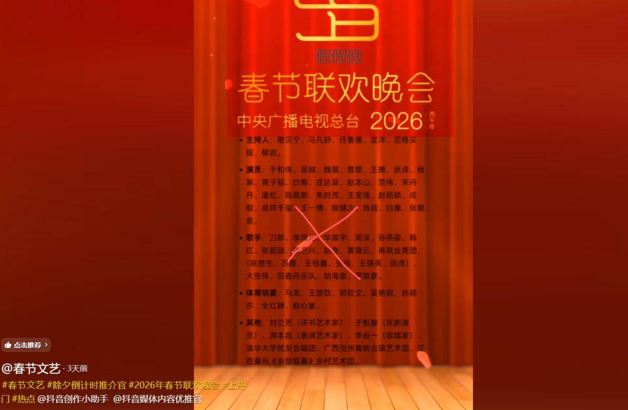这些假名单里,一半以上都是流量明星,有些连台词都说不清楚的偶像被列进了小品名单,还有曾因假唱翻车的年轻歌手也在其中。