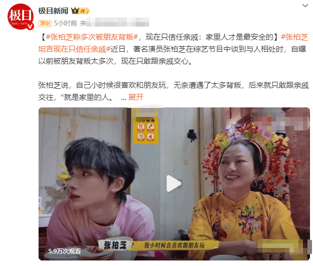 近日,著名演员张柏芝在综艺节目中谈到与人相处时,自曝以前被朋友背叛太多次,现在只敢跟亲戚交心。