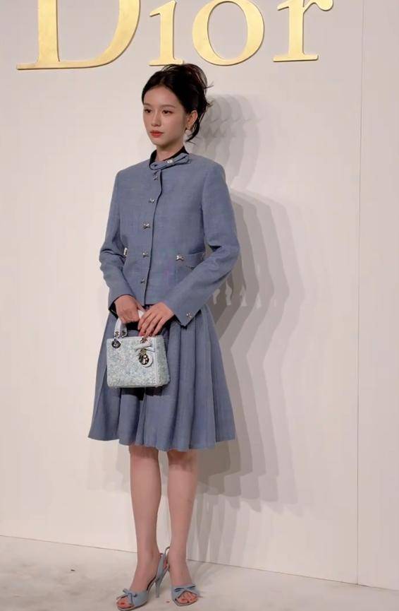 在此次活动中她身着迪奥最新季的蓝色套装。