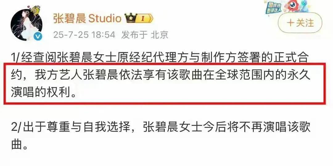 但张碧晨工作室随即发出严正声明,强调“唯一原唱”身份,并列出时间线、登记证书等作为佐证。
