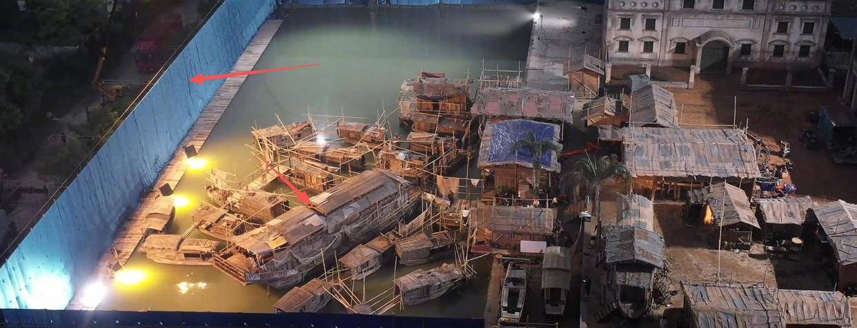 为了拍出逼真的海景,剧组特意搞了个蓝色的大棚,里面还安了个超级大的水池。
