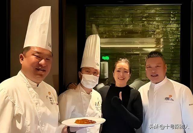 网络上也流传了一张,巩俐和三位厨师一起的合照。