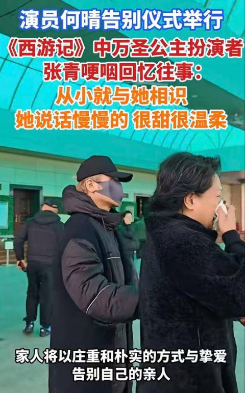 《西游记》中万圣公主扮演者张青也现身送别何晴,她哽咽回忆往事,称何晴说话慢慢的,很甜很温柔,在离开的时候,张青忍不住哭泣,不舍她还那么年轻。