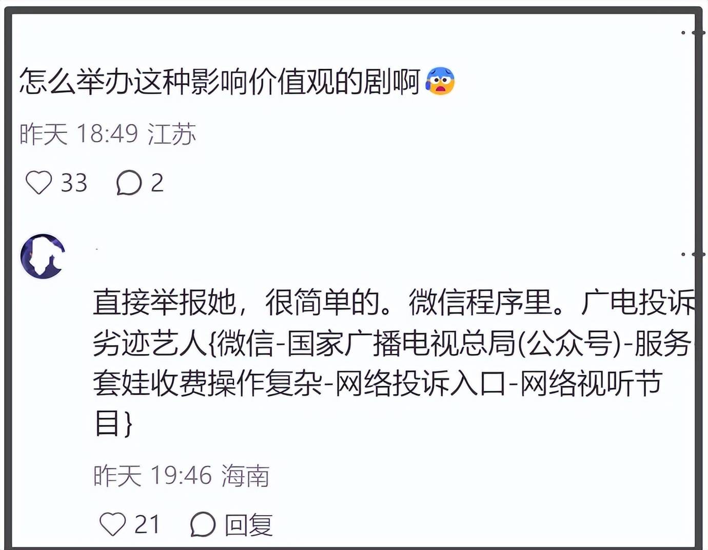 剧里剧外,《双轨》传递出的价值观都让人深觉不适。对此,大家的意见很明确,那就是举报!还有热心的网友提供了举报流程。偶像剧因为其受众群体的特殊性,必须对剧中传递的三观严格把控,《双轨》如今人人喊打的口碑就是前车之鉴,希望剧方出来回应一下!