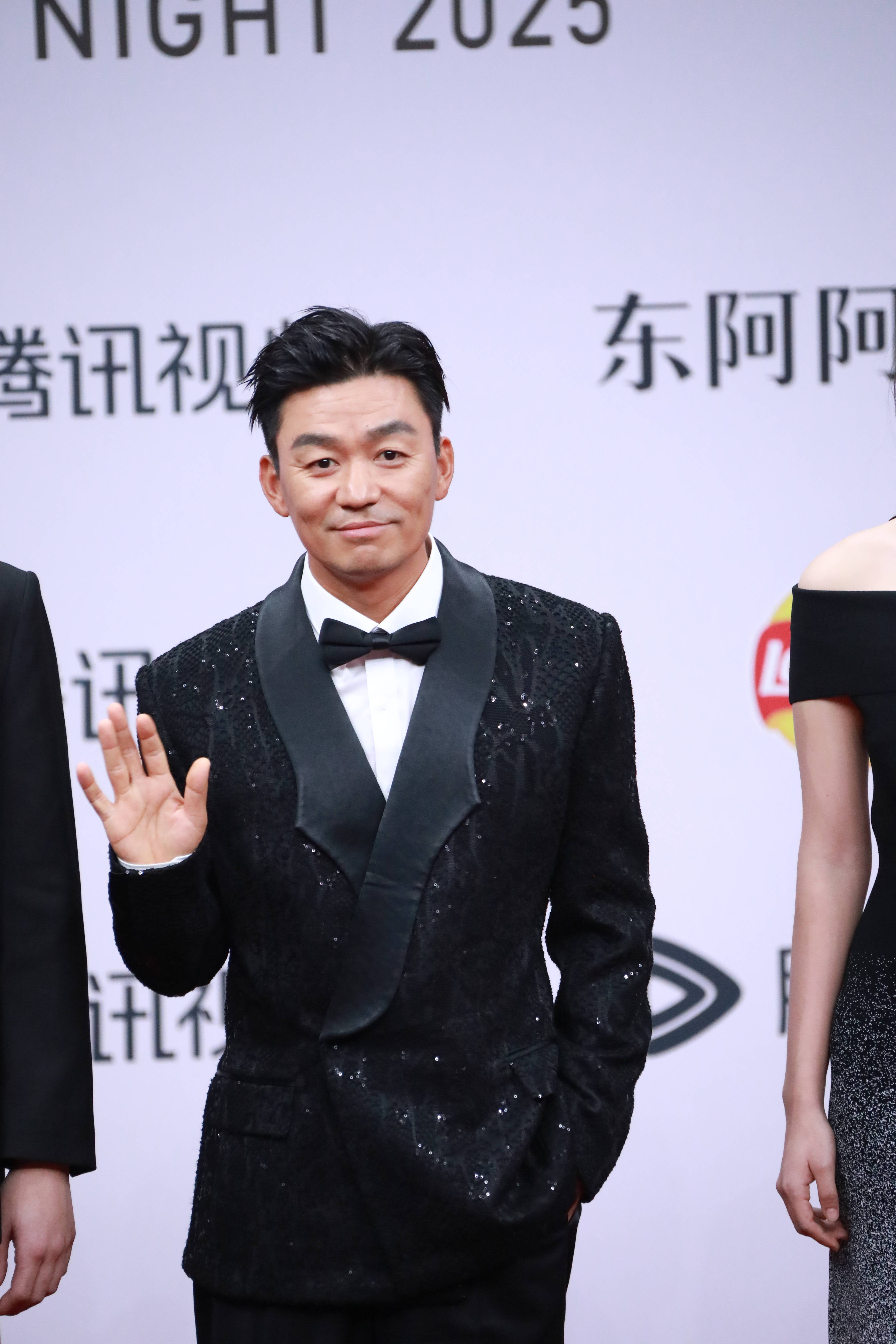 王弘毅黑色西装潇洒帅气。