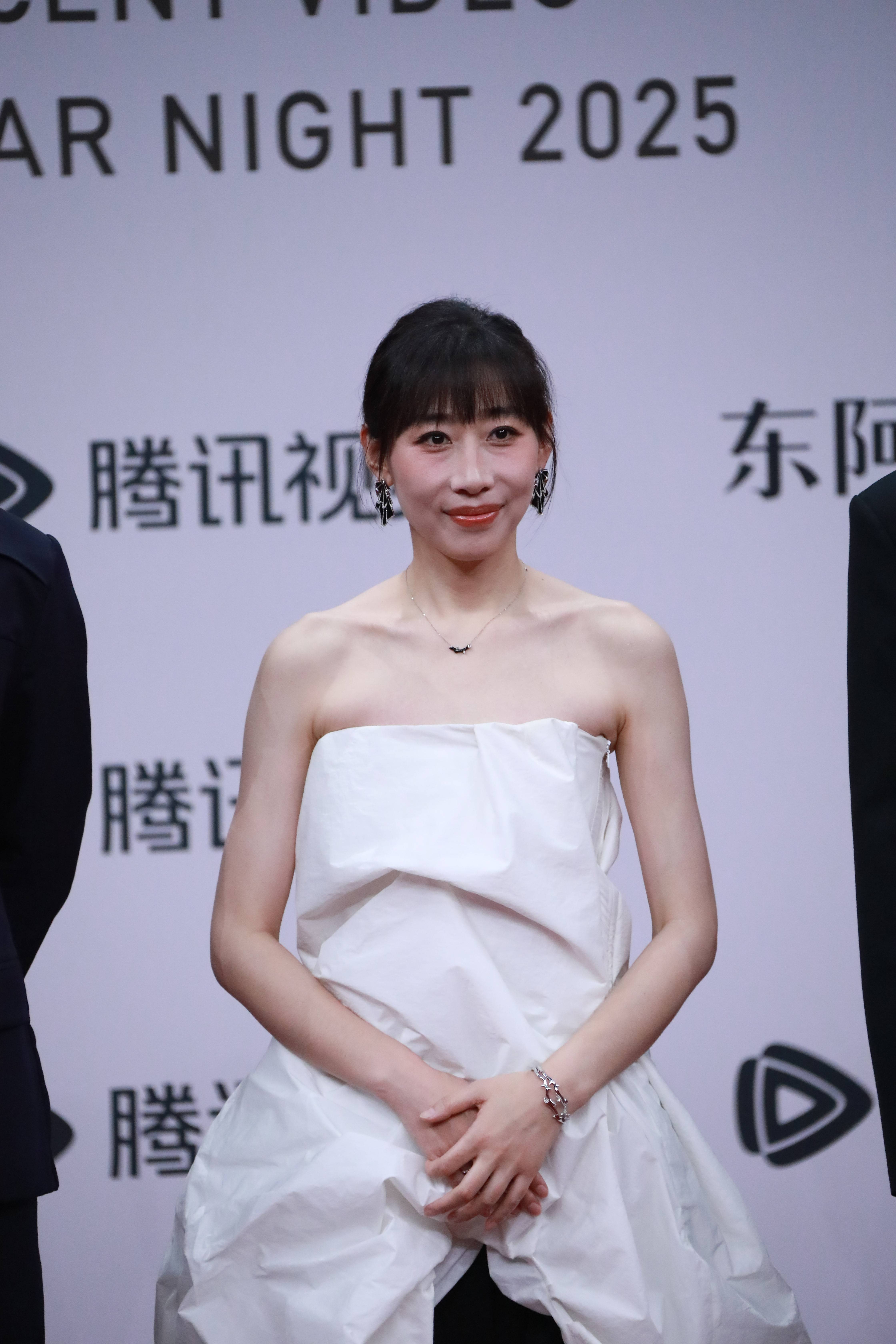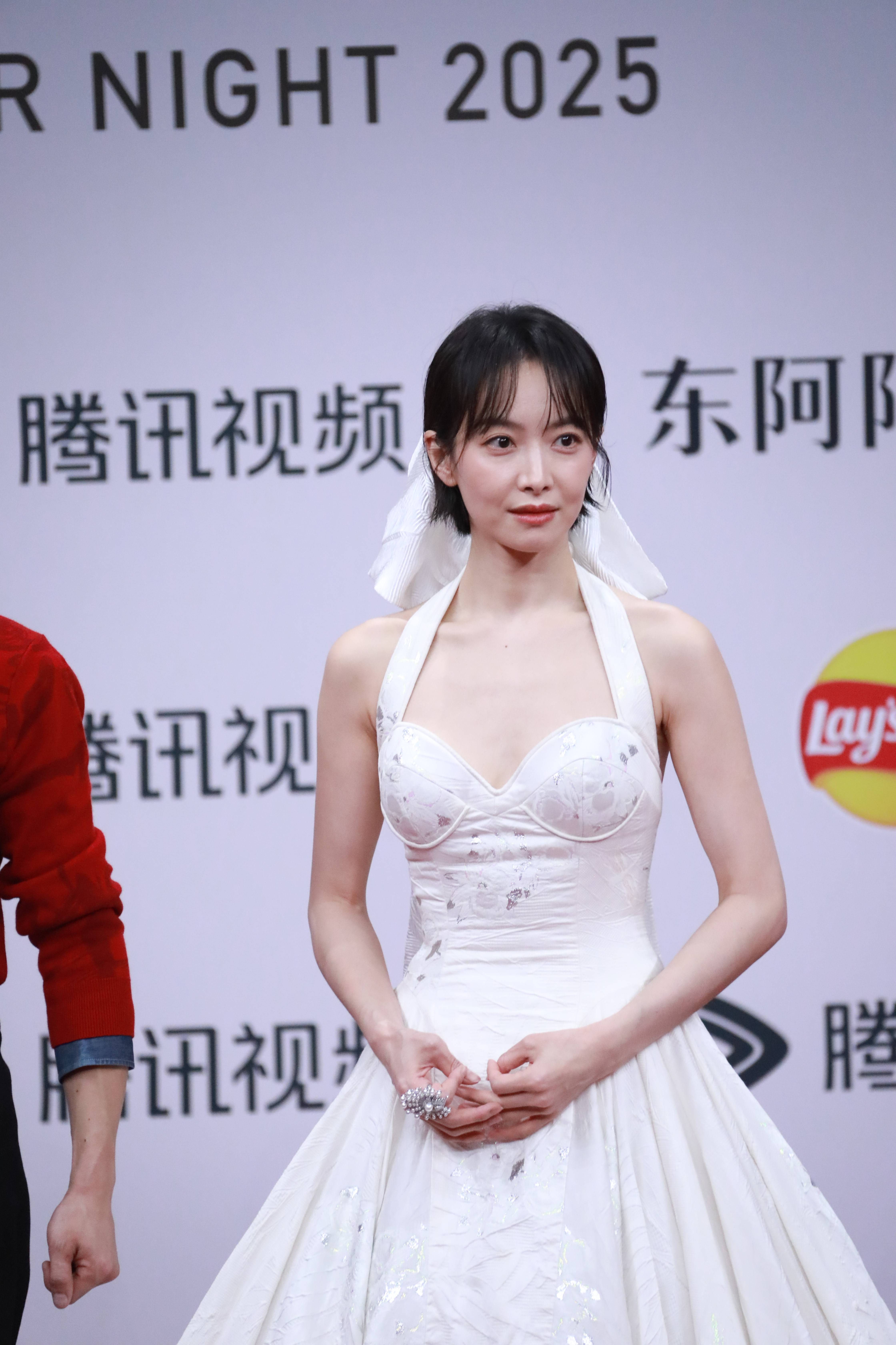 任素汐白色抹胸裙优雅美丽。