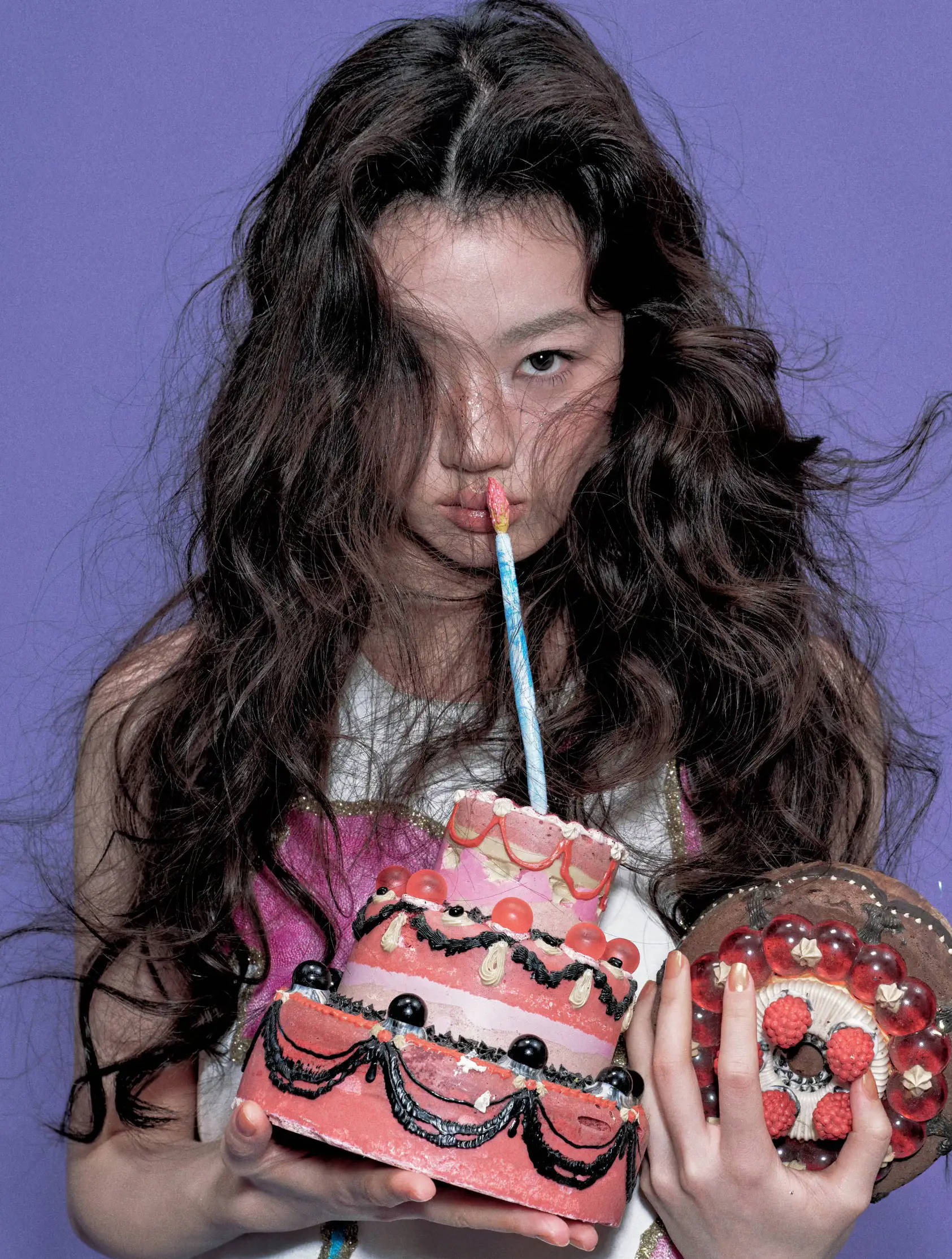 单依纯轻捧小蛋糕,灵动又带着甜酷的艺术感。