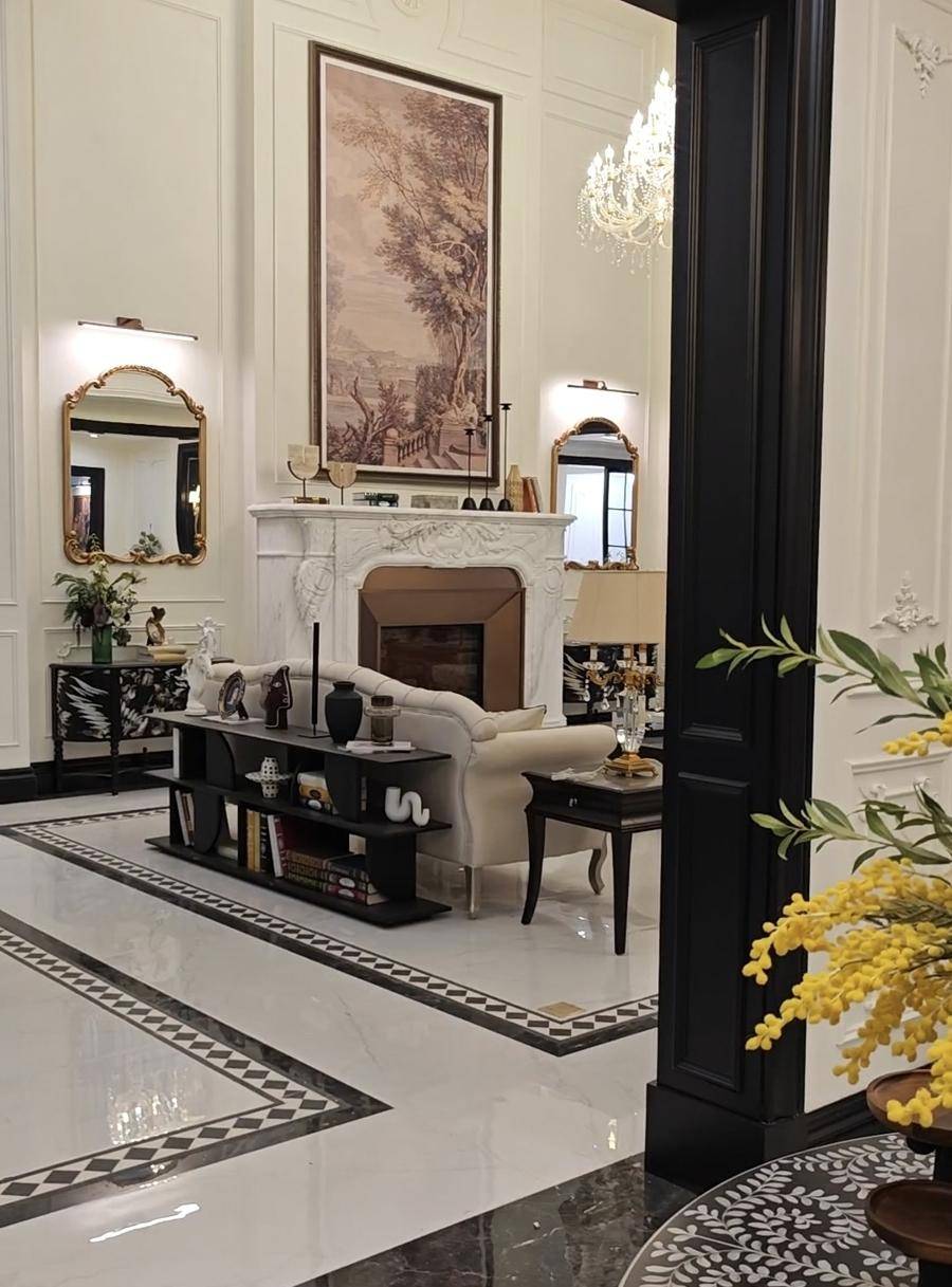 最近,园区内又新增了一个400多平方米的大型实景豪华庄园片场,内部有会客厅、卧室、书房、厨房,还有旋转楼梯与露台,从家具到餐具,各类细节陈设都经过精心布置与搭配。外部则有草坪和泳池,建筑外立面分别做了不同风格,供剧组挑选。