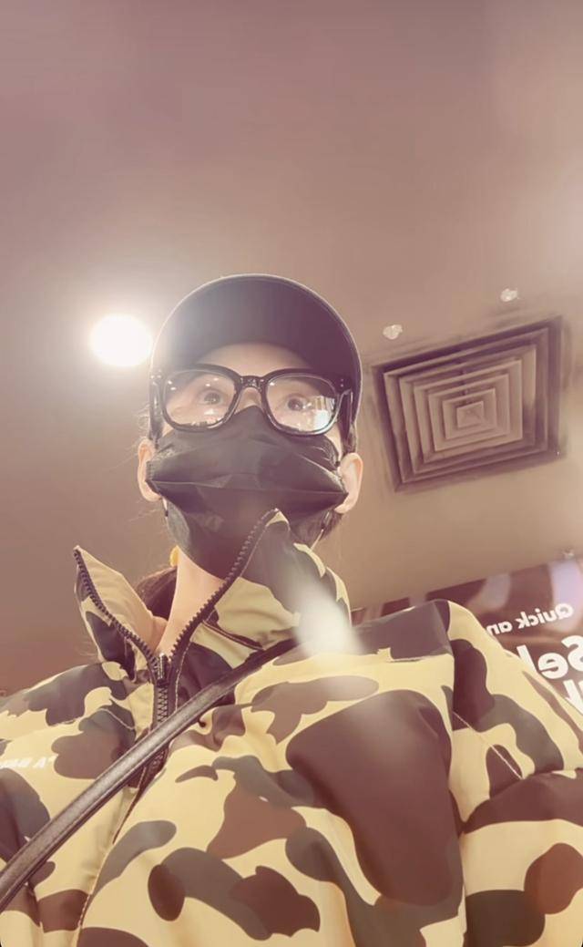 视频里的她全副武装,迷彩羽绒服配鸭舌帽,口罩眼镜齐上阵,把自己裹得严严实实,完全就是家庭主妇的既视感。