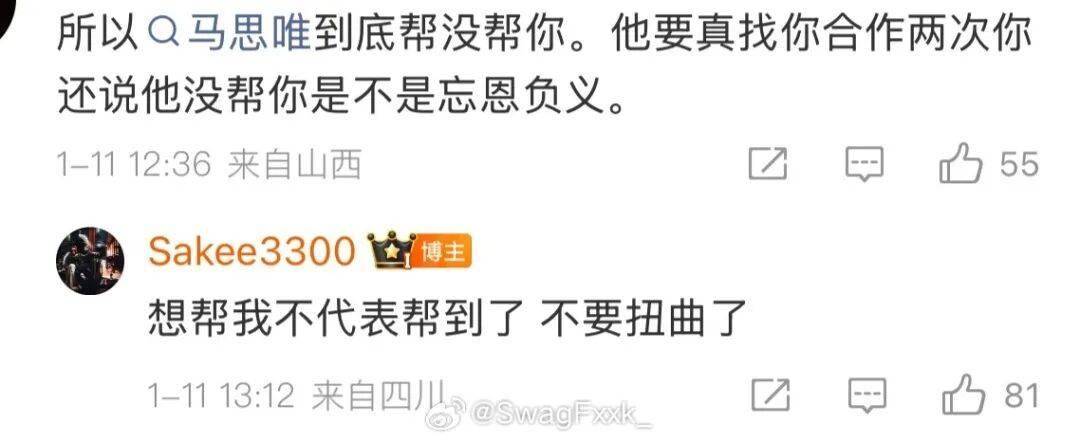 另外,有网友质疑Sakee直播说马思唯没帮Digi,自己从没沾过马思唯的光,昨天又发文说马思唯主动合作!Sakee这操作忘恩负义。
