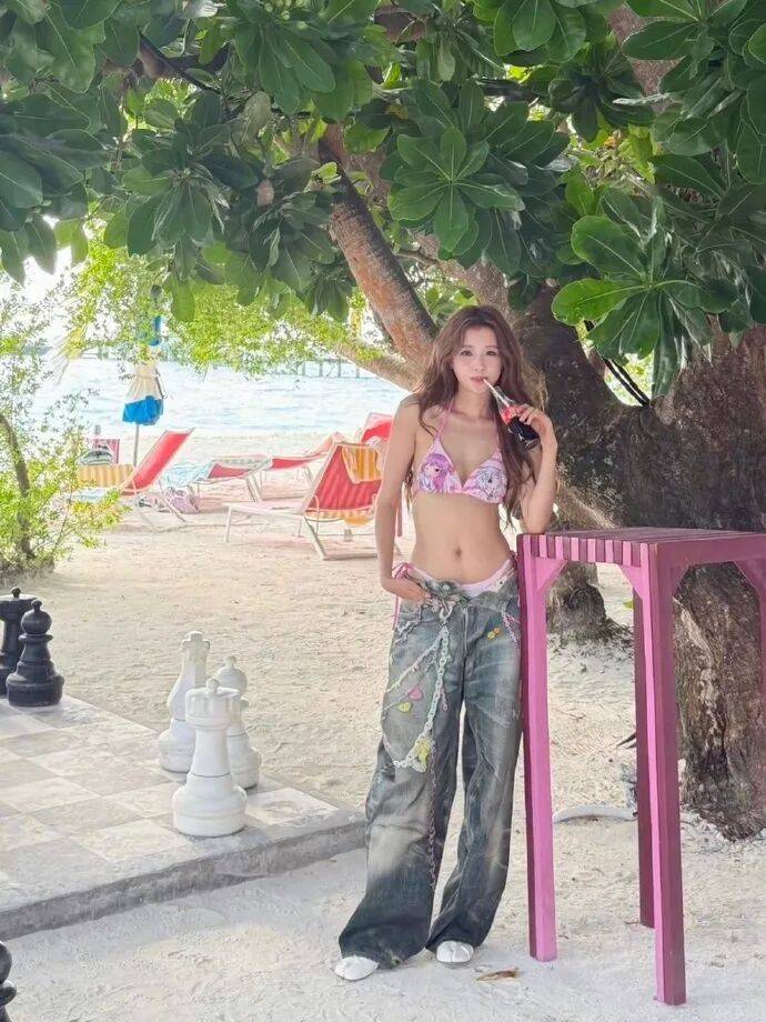 多照片中,孙怡身着比基尼,直角肩、蝴蝶背和腿部线条,网友都大赞她“惊艳”“火辣”!
