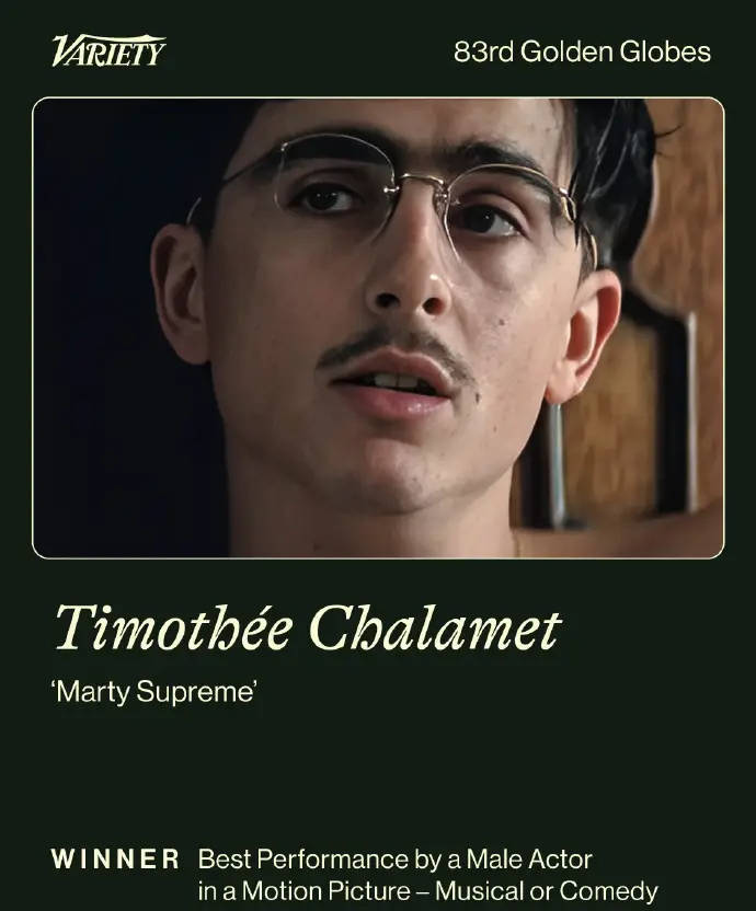 搜狐娱乐讯 甜茶(提莫西·查拉梅)凭借新片《至尊马蒂》在2026年第83届金球奖颁奖典礼上成功摘得音乐/喜剧类最佳男主角,首次斩获金球奖影帝殊荣。